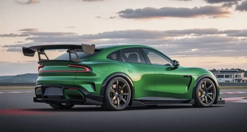 Unofficial renderings inspired by the spy photos suggest a design incorporating more aggressive aerodynamic elements. These features include a prominent front splitter, a ventilated hood, black wheel arch extensions, and racing-style alloy wheels. At the rear, the concept renderings depict a large diffuser and a fixed rear wing, reflecting a motorsport-inspired aesthetic.