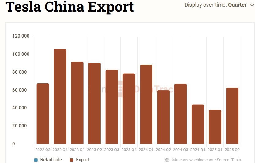 In the second quarter, Tesla chain exported 62,917 cars, up 64.9% from Q1 and a 5.1% increase year-over-year. That means Tesla China has broken six consecutive quarters of year-over-year decline.