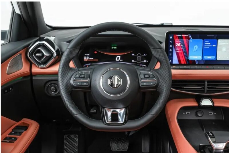 The 2026 MG5 continues the design of the previous model with a fastback shape and added two new exterior colors: orange and gray, on top of red and white.