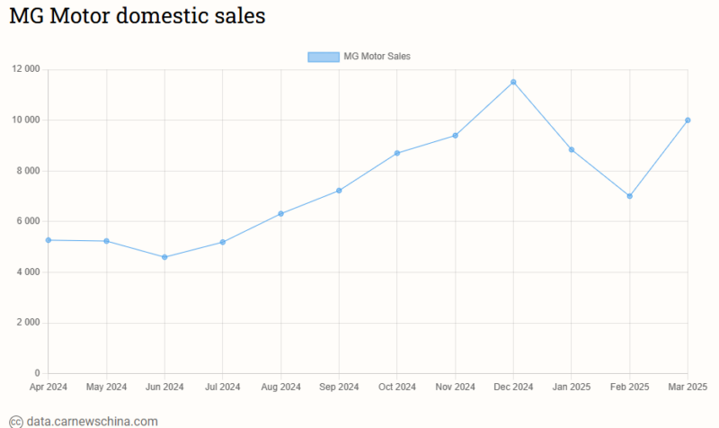 MG sold 10,000 cars in China in March, up 82.6% from last year.