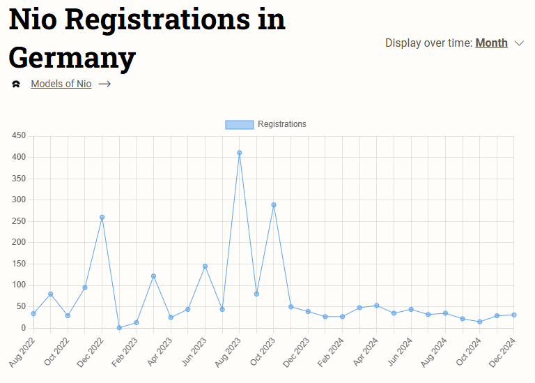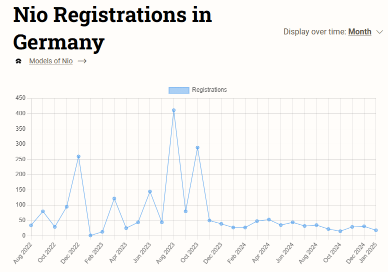 In 2024, Nio sold 398 vehicles in Germany. Nio is subject to an additional 20.7% import tariff from the EU, and the total tariff is now 30.7%.