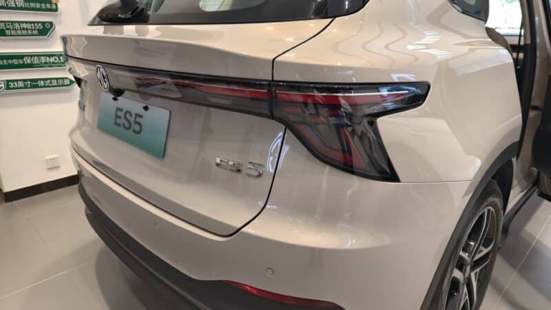 Engineered with a low center of gravity at just 530 mm, the ES5 benefits from a battery pack with a slim height of 110 mm. This contributes to improved handling and a balanced 50:50 weight distribution, enhancing driving dynamics. The vehicle employs a McPherson suspension at the front and a five-link independent suspension at the rear.