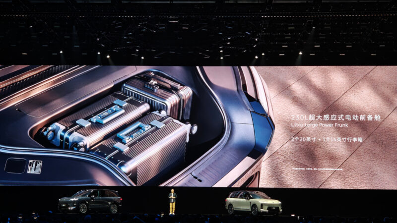 20:05(GMT+8): The Nio ES8 boasts a 2.5 square-meter sunroof and a 2264-mm taillight unit. They are also the biggest in the segment. It has a storage capacity of 777 liters (rear trunk + front trunk) with six people inside. It is suitable for 12 suitcases. The large 230-liter frunk of the Nio ES8 III fits one small and two large suitcases.