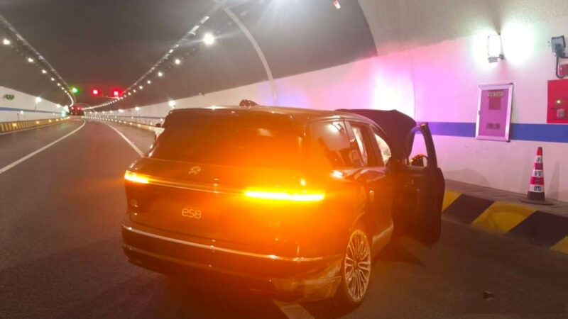 Photos of the first incident with the third-gen Nio ES8 involved were shared online by a Chinese blogger, Shuishuikuang Tongxue. We can see a car with a damaged front end staying in a tunnel. There is no information about the location and the cause of the crash.