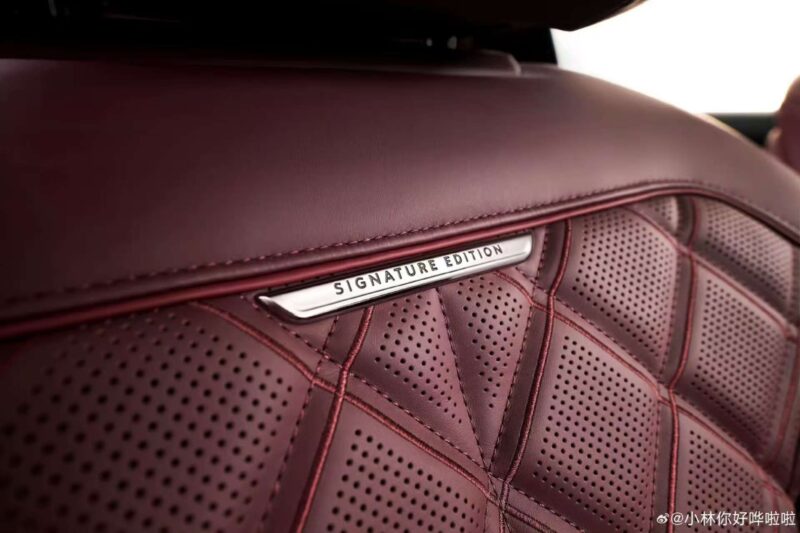Additional exterior features include hidden door handles, a concealed rear wiper, and a rear light bar composed of 600 LEDs and 480 SuperRed particles. Six body colours are offered, including the exclusive Xinglan Grey, and the vehicle comes with 22-inch forged wheels fitted with Pirelli P Zero tires.