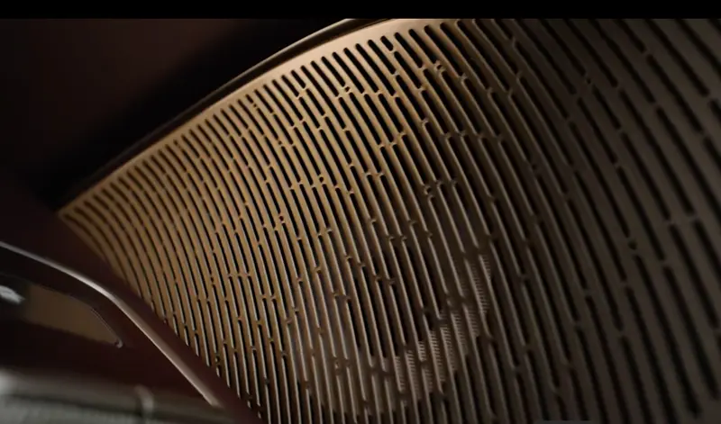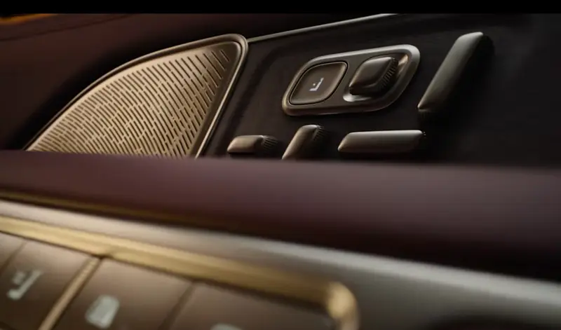 The new ES8 features aviation-inspired toggle switches with a straight-grain knurling process and satin-brushed trim strips. A standout feature on the door panels is the “Cosmic Orbit” metal brushed speaker grille, which houses a newly developed audio and infotainment system. The vehicle boasts 52 square meters of soft-touch materials, and the seats feature intricate embroidery with over 120,000 stitches.