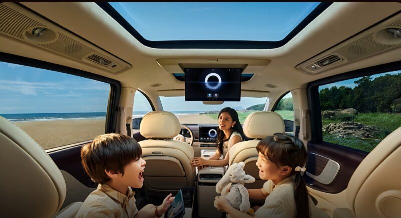 Inside, the cabin features a 29-inch AR-HUD, a 17.3-inch ceiling entertainment screen, and a 15.6-inch central control screen, powered by Huawei’s HarmonySpace 5 system. A 13L refrigerator is embedded in the center console.