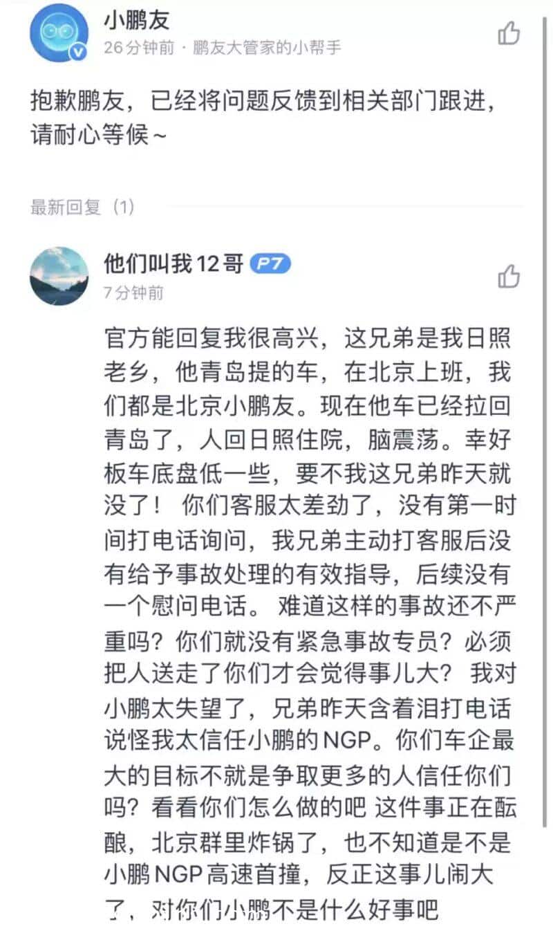 Based on the relevant information available, the owner said he was very disappointed with the Xpeng P7. And he hopes that Xpeng could return the car for himself. After the accident, Xpeng’s customer service did not call for any condolences. The owner’s friend also published the accident situation in the community application of Xpeng. And a “helper of the Pengyou butler” gave an official reply, i.e., “Sorry Pengyou, the problem has been reported to the relevant department for follow-up, please wait patiently.” This is what the official of Xpeng replied to; he doesn’t have any more replies. The incident is under further investigation, and we will continue to update the story once more information is published.
