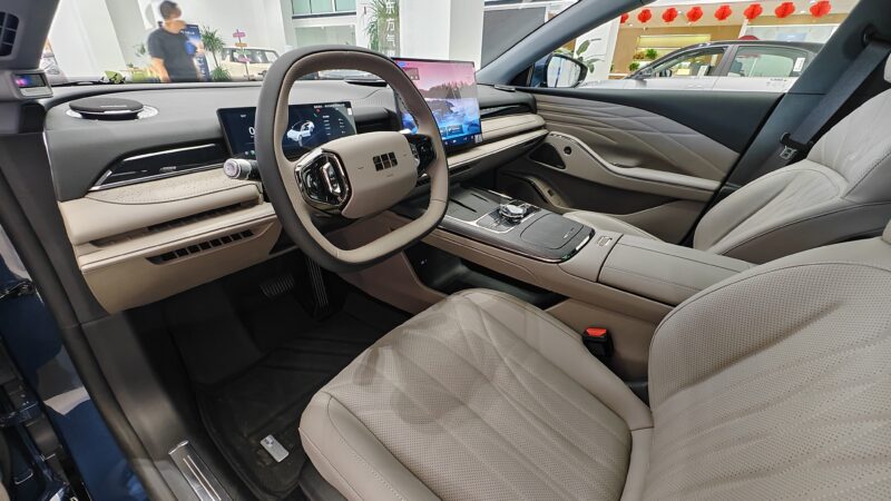 At the rear, a full-width taillight bar spans the vehicle, echoing design cues found in other Geely Galaxy models. Proportions are deliberately restrained, prioritising aerodynamic efficiency, with a drag coefficient of 0.25 Cd. Review observations note that panel alignment and overall build quality are consistent with Geely’s recent production improvements, indicating a maturity in manufacturing standards.