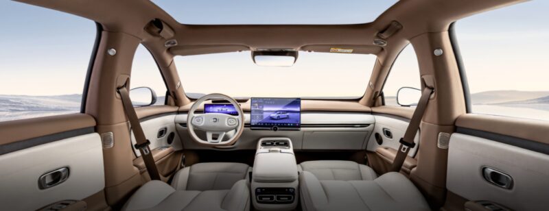 Inside, the cockpit features two screens, namely, a 15.6-inch 2.5K central control screen and a 10.17-inch instrument panel. The sound system comes from 20 speakers. Wireless charging panels are also supported on the center console, along with an embedded 9.5 L double-layer refrigerator on selected trims.
