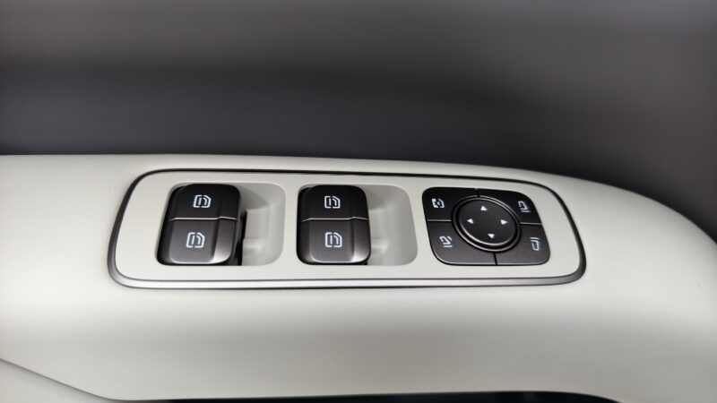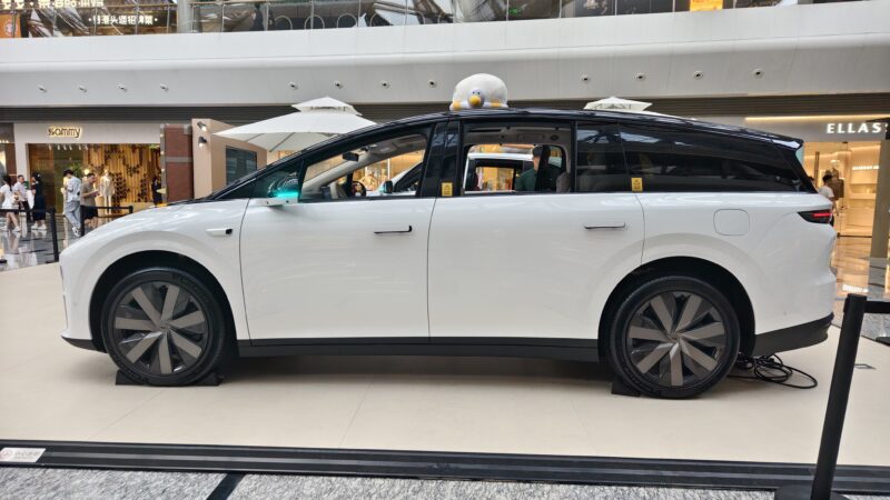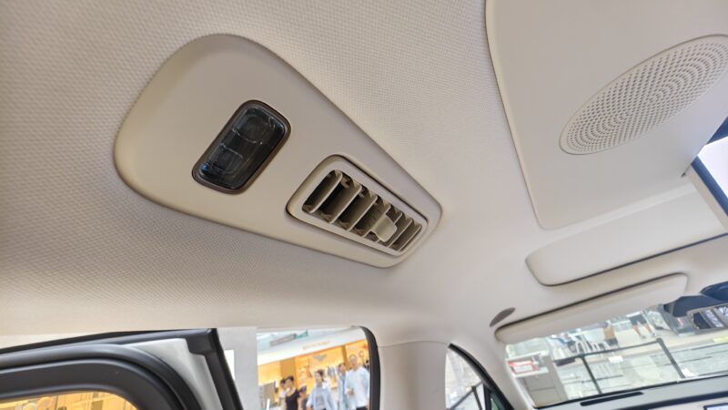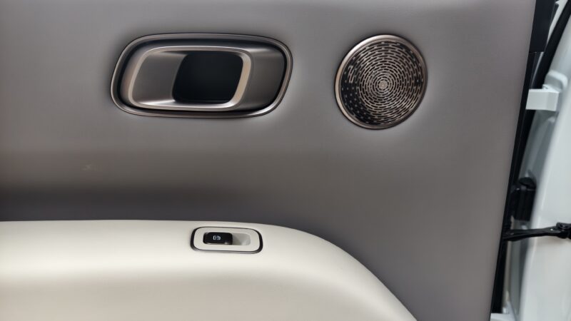 In person, the silhouette is less SUV-like and closer to a large MPV, with a long cabin profile and upright glass areas that emphasize interior space over ruggedness. At the rear, the design is more restrained compared with the Mega’s distinctive tail treatment. Black paint is applied above the beltline, including the roof and pillars, to lower the silhouette visually.