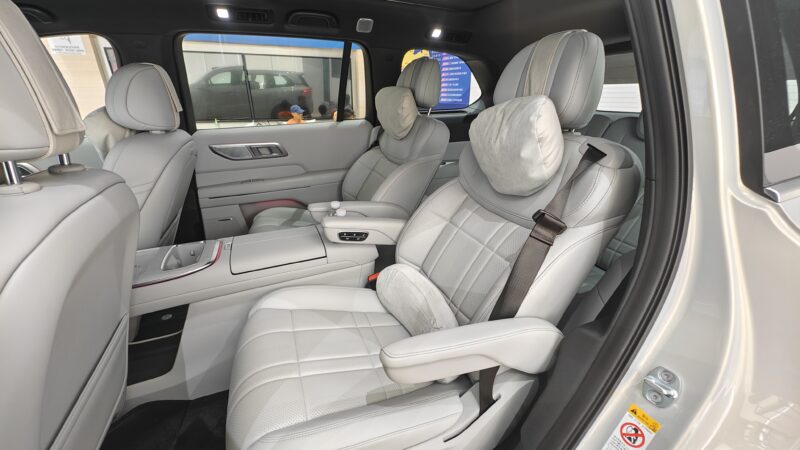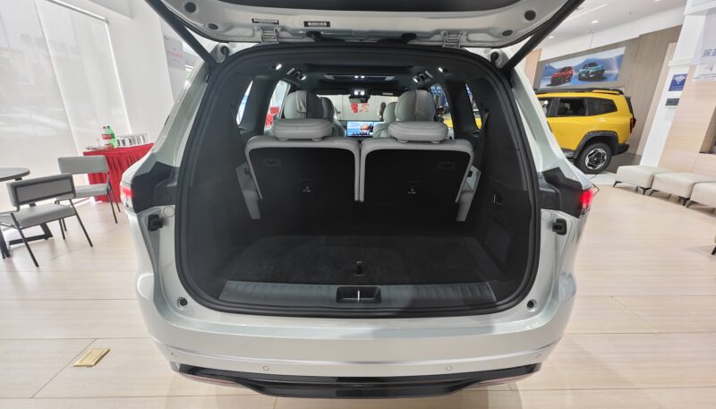 Unlike many three-row SUVs, the S09 doesn’t treat the third row as an afterthought. It’s surprisingly usable, comfortably fitting adults up to 175 cm with a relaxed 125-degree recline and even a few child-friendly storage spots. And with every seat occupied, there’s still enough room in the back for six carry-on suitcases — not bad for a whole family.