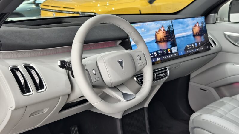 The S09’s dual-motor extended-range setup packs more than 300 kW, delivering smooth, assured acceleration in city traffic or merging onto the highway. Since the engine doesn’t directly drive the wheels, cabin noise and vibration stay impressively muted. Push past 120 km/h, and the pull eases up a bit, but it still holds its own for typical highway cruising. The brake regen system gives you a few levels to play with, though it doesn’t quite offer the precision needed for accurate one-pedal driving.