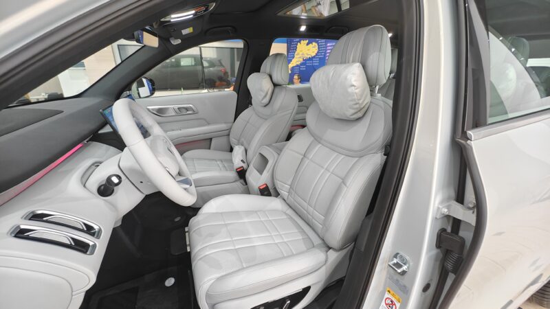 The materials inside the S09 are a bit of a compromise—there are soft-touch surfaces where it counts, but details like the woodgrain trim and plain door handles feel more budget than the flagship. Still, the S09 makes up for it with clever use of space. The second-row “zero-gravity” seats are highly adjustable, complete with leg rests, and when paired with the fold-flat third row, they transform the cabin into a 2.5-meter-long sleeping space — a practical bonus for road trips or impromptu breaks.