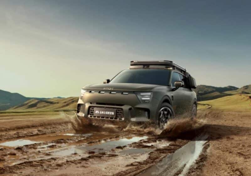 It is worth pointing out that the Jungle Realm Limited Edition is equipped with an outdoor adventure package, including an X-shaped painted roof platform, luggage racks, a small container on the side of the car, a side ladder, side steps, and a hidden trailer connector, with a towing capacity of 1.6 tons/1,451 kg. The luggage racks support a static load of 240 kg and a dynamic load of 100 kg. The trunk is also equipped with a 220 V power interface to support the V2L external discharge function.