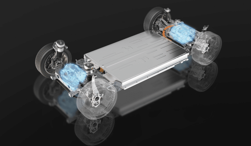 The AWD has a combined maximum power of 432 kW (579 hp), the front asynchronous motor outputs 165 kW (221 hp)/270 Nm while the rear motor outputs 310 kW (416 hp)/440 Nm. The 0 – 100 km/h acceleration time is 4.9 seconds. The 100 kWh ternary lithium battery pack provides a CLTC range of 580 km.