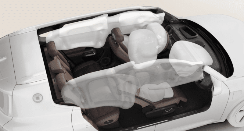 Furthermore, there are eight airbags throughout the vehicle: two front airbags, two front side airbags, two side curtain airbags, a far-side airbag, and an optional zero-gravity seat cushion airbag.