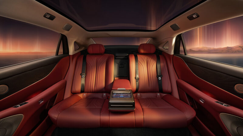 Other configurations include a 6.6L refrigerator, a zero-gravity co-pilot seat, heating/ventilation/massage functions for all seats, 256-color ambient lighting, and a foldable rear center console.