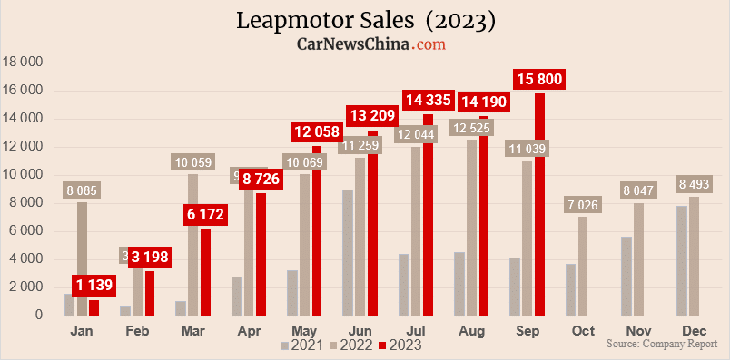 Leapmotor sold 15,800 vehicles in September in China, up 43% compared with the same period last year and 11% up from last month.