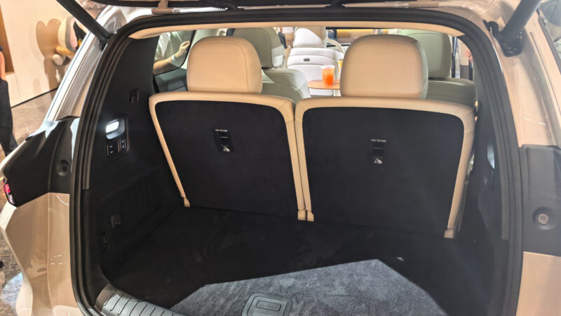 The cushion length of the i8’s third-row seats reaches 503 mm. It is 8 mm longer than the Tesla Model Y’s second-row seats. The cushion width is 544 mm (35 mm wider than the Model Y). And the cushion thickness is 100 mm (5 mm more than the Model Y). The trunk of the Li i8 with the third row seats offers a depth of 565 mm. It is enough to store some suitcases and a folding table that could be placed between the second-row captain chairs.