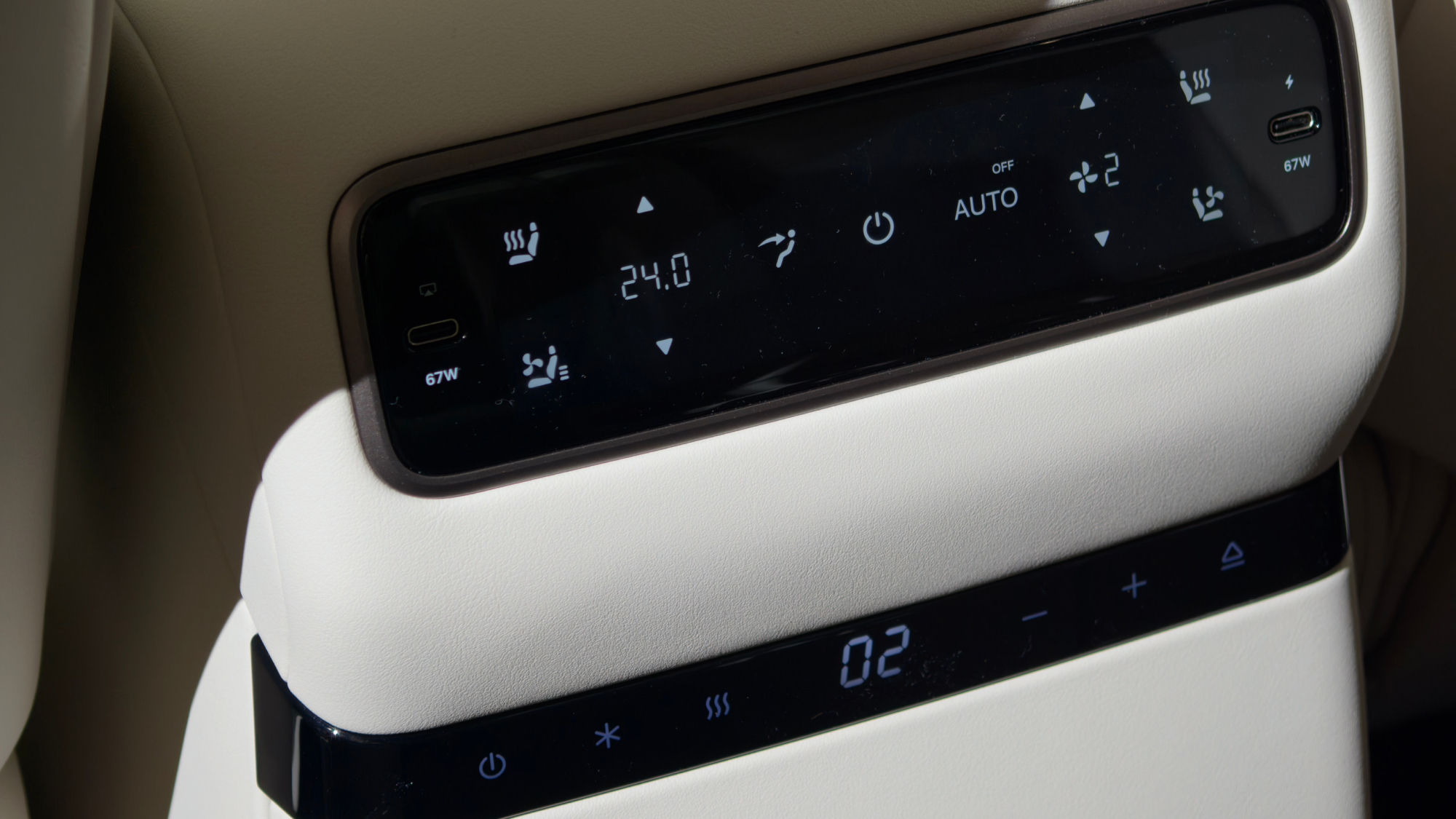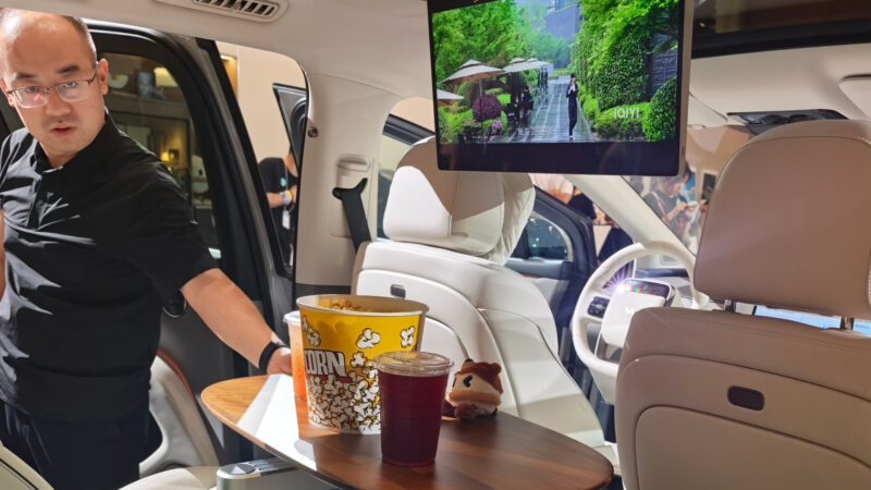The Li i8’s interior has cooled wireless charging pads, a speaker in front of the driver, and a sunroof that blocks 99.9% of UV rays. The center console has two 15.7-inch screens. It is also the first car with a white steering wheel. This vehicle adopts a double-layer windshield, side windows, and a sunroof. The noise level in the Li Auto i8 cabin at a speed of 120 km/h is 63.2 dB.