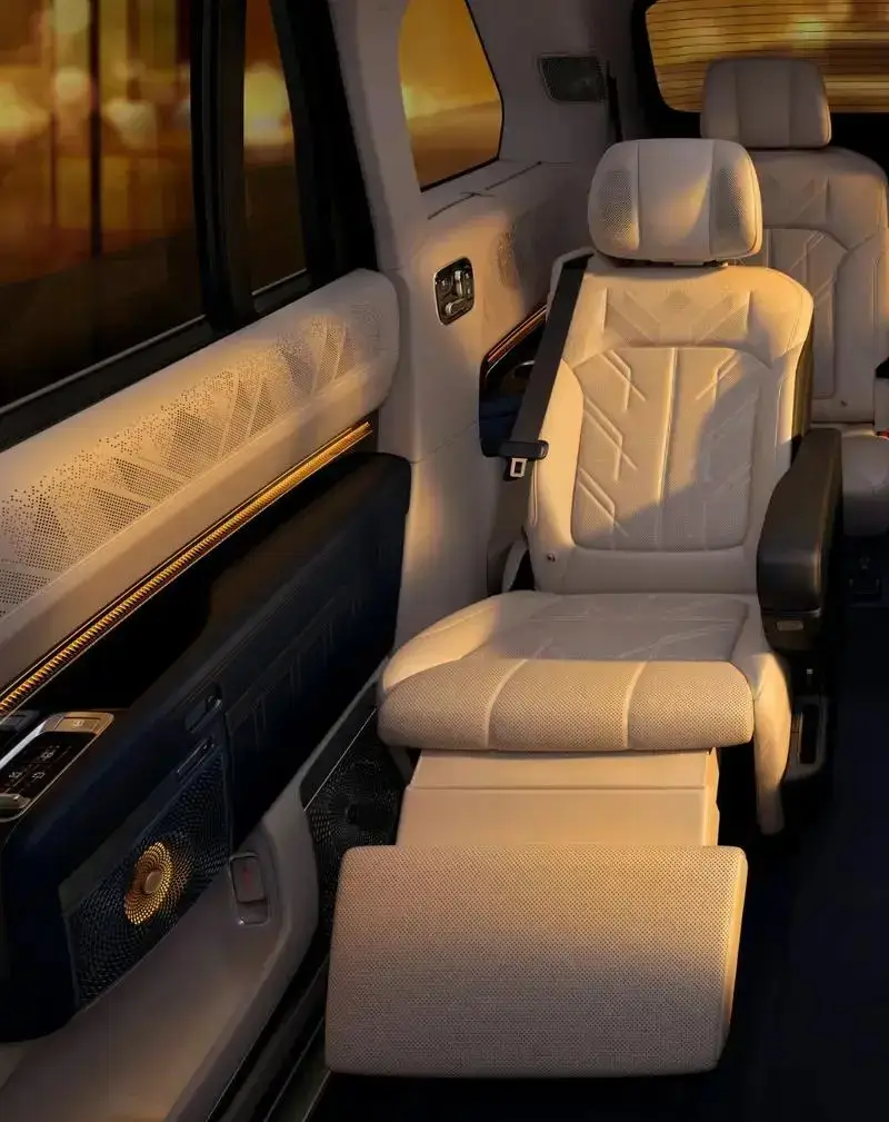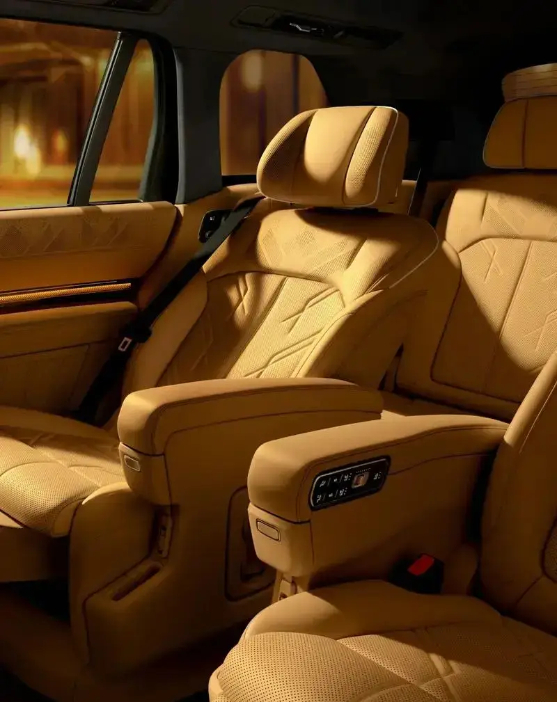 The second row of the Zeekr 9X boasts dual zero-gravity seats. These seats offer features such as heating, ventilation, massage functions, and adjustable leg support. For versatility and passenger interaction, the seats can also rotate a full 180 degrees. Rear passengers will also benefit from a large entertainment screen.