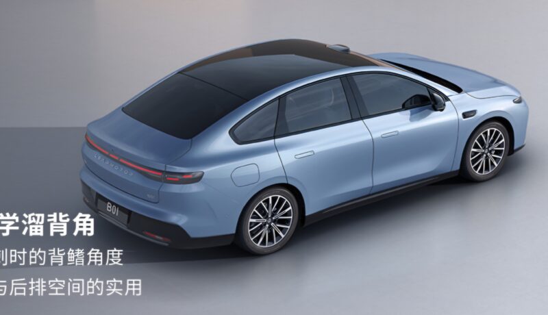 The Leapmotor B01 boasts a drag coefficient of 0.197 Cd and a fastback angle of 17.2°. Its body dimensions measure 4770/1880/1490 mm, and the wheelbase is 2735 mm.