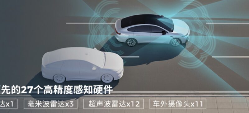 The Leapmotor Pilot advanced driving assistance system onboard the top-of-the-line version is supported by 27 sensors, including one lidar, three millimeter-wave radars, 12 radars, and 11 cameras, to realize highway NOA, urban NOA, and parking assist.
