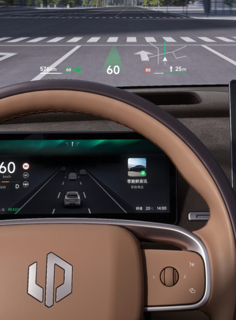 The high-end trims also come with Leapmotor’s third-generation 60-inch AR-HUD, which can project navigation and assisted driving information in front of the driver’s field of vision.