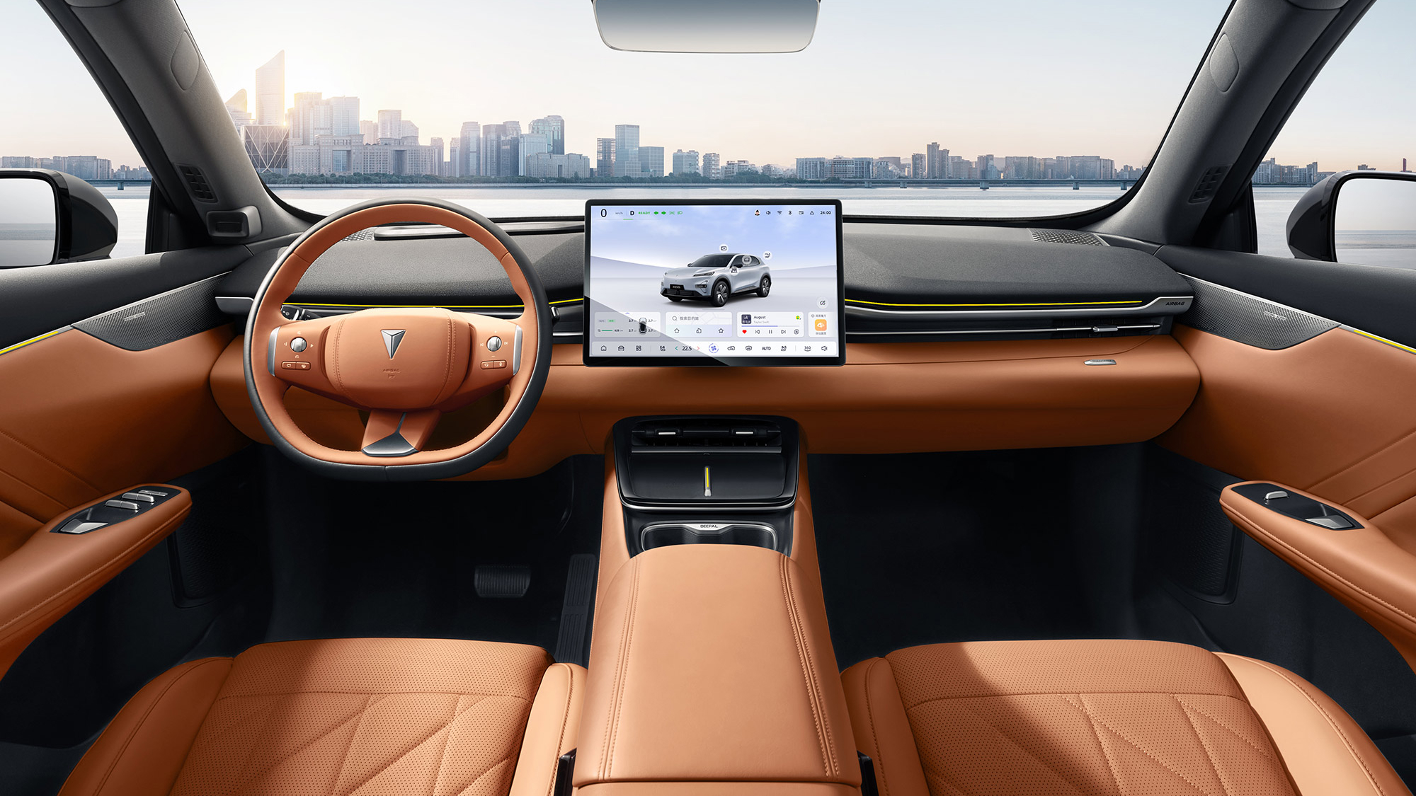 The center console of the Deepal S05 has no conventional instrument cluster. There is a large floating screen with a diameter of 15.4 inches. The center tunnel of the S05 has two wireless phone charging pads and a pair of cup holders. Its gear shifter sits behind the three-spoke D-shaped steering wheel. The front seats boast pronounced side support. The car’s trunk offers 492 liters. This crossover has a front trunk for 159 liters.