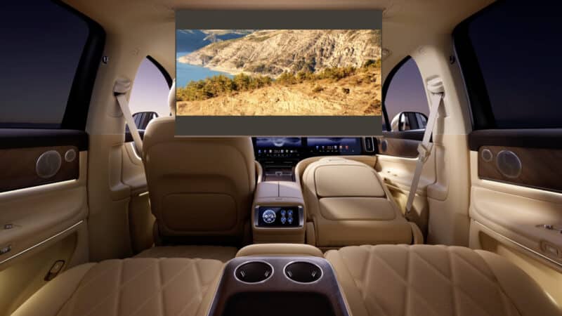 The 2025 Aito M9 interior also aligns with its predecessor. It is available with five- and six-seat layout variants. The center console of the M9 has a large triple screen. It integrates a 12.3-inch LCD instrument panel, a 15.6-inch main screen, and a 16-inch front passenger monitor. However, the updated model offers a few notable enhancements, including power thigh support for the driver’s seat, an upgraded projector, and a new storage box with cooling and heating functions.