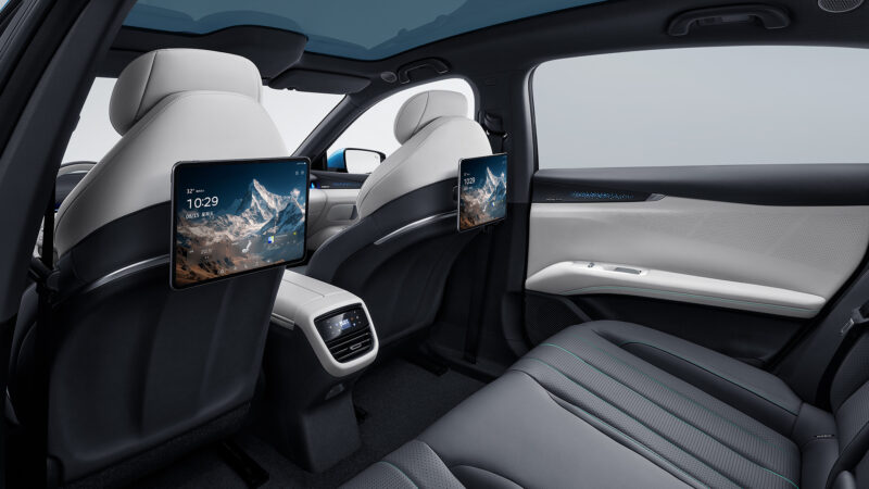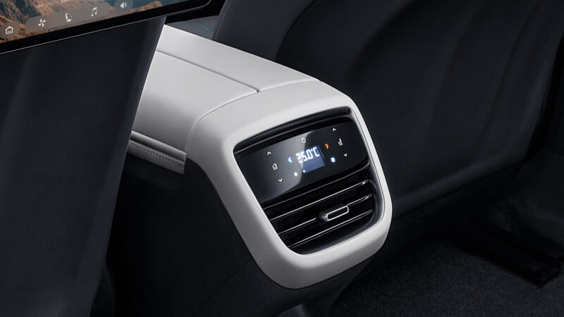 A control screen is located behind the center console to allow the adjustment of the air conditioning and rear seat angle. Furthermore, rear passengers have access to touch screens at the back of the front seats.