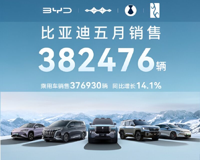 BYD reported NEV sales of 376,930 units in May, reflecting a 14.1% increase compared to last year and a 1.2% gain from April. The company has sold 1,735,643 vehicles year-to-date, up 37% over the first five months of 2024. Its Dynasty and Ocean series remain central to BYD’s dominance in the market.