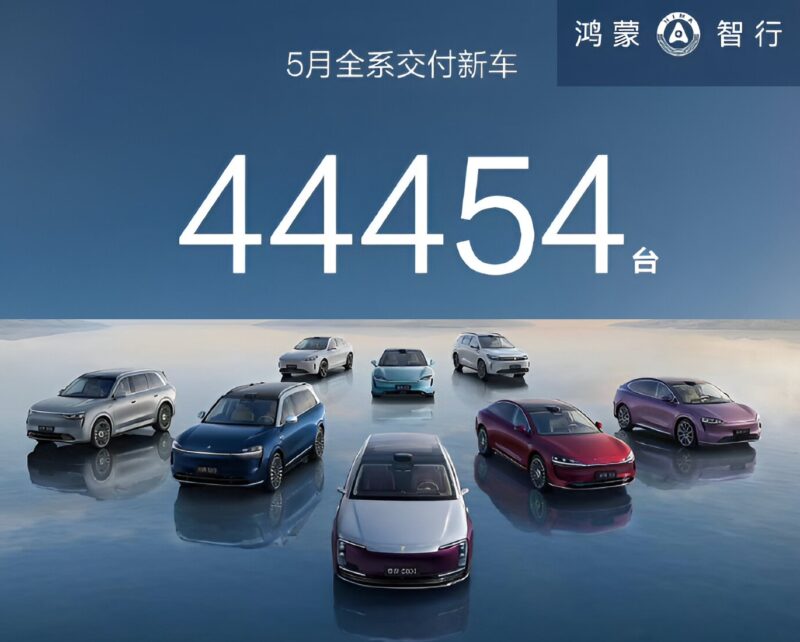Harmony Intelligent Mobility, backed by Huawei, delivered 44,454 NEVs in May. The Aito M9 was the top seller with 15,481 units, followed by the M8 (12,116 units), M5 Ultra (4,889 units), and M7 (4,139 units). The Luxeed R7 added 5,124 units, while the newly launched Stelato S9 EREV contributed 2,000 units.