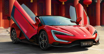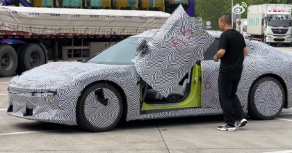 Spy shots: XPeng’s new P7 with scissor doors spotted testing ahead of launch